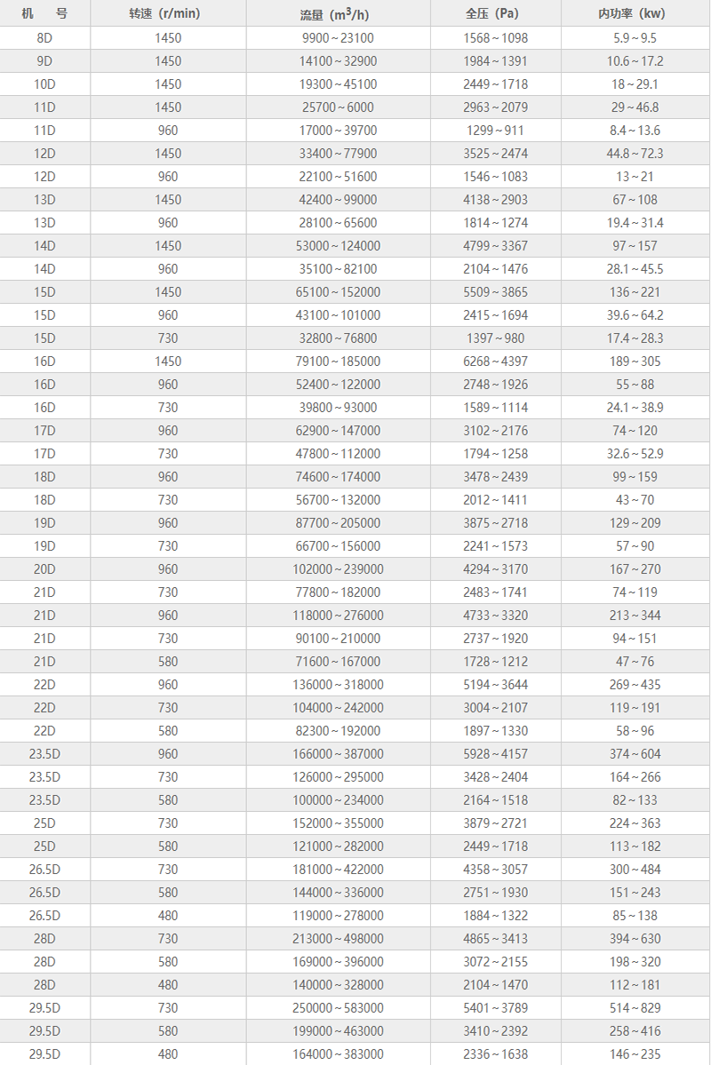 送風機輸送的介質為空氣,引風機輸送的介質為煙氣或含雜質顆粒之氣體。含雜質濃度小于200mg/m3 時可用四年以上。如含雜質大也可使用,但使用壽命相對縮短。送引風機較高使用的溫度不超過250℃。